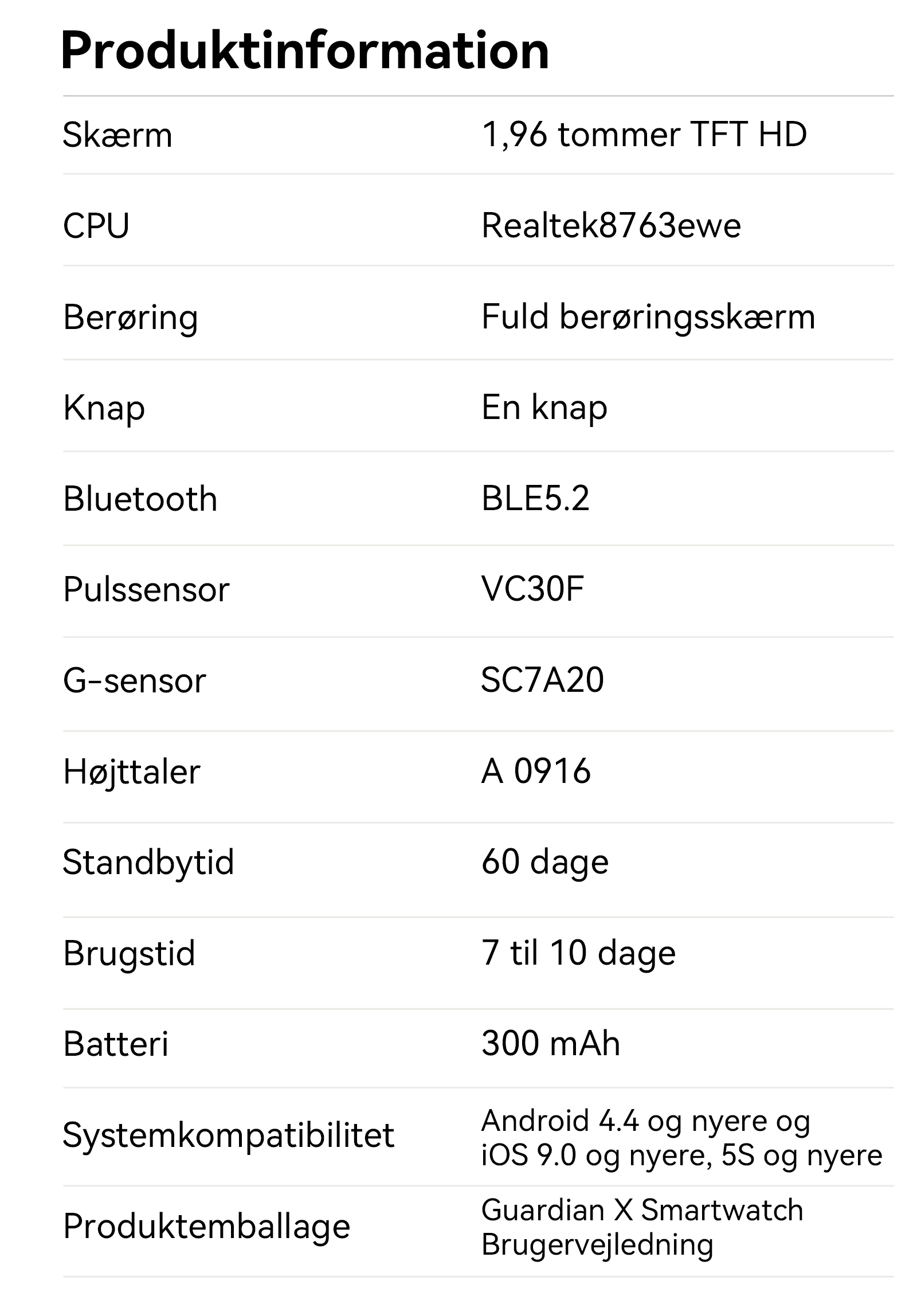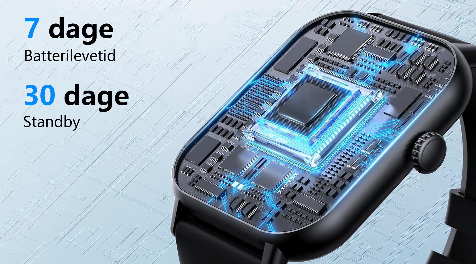 - Ekstra lang batterilevetid – Oplad én gang, holder en uge